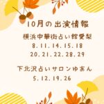 2025年10月2日 / 最終更新日時 : 2025年10月2日 admin@moekamahalo.com 10月の出演情報 10月の出演情報 🎃横浜中華街占い館愛梨 11-19時 🎃下北沢占いサロンゆあん 日曜13-20時 &…