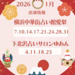 2026年1月1日 / 最終更新日時 : 2026年1月1日 admin@moekamahalo.com 2026年1月の出演情報 2026年今年もよろしくお願いいたします🙇♀️ 1月の出演情報 🧧横浜中華街占い館愛梨 11-19時 irie-yoko…